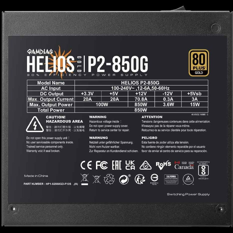 پاور GAMDIAS HELIOS P2‑850G از خانوادهی ممتاز P2 Series،