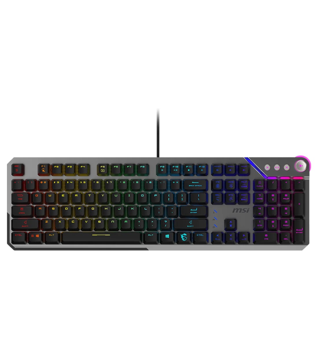 کیبورد MSI STRIKE 600 مجهز به کلیدهای مدیا اختصاصی است که به شما امکان میدهد تا به راحتی پخش موسیقی و ویدئو را کنترل کنید. علاوه بر این، وجود رل کنترل صدا (Volume Roller) یک مزیت بزرگ محسوب میشود. این رول به شما اجازه میدهد تا به سرعت و با دقت بالا، میزان صدا را کم یا زیاد کنید، بدون اینکه نیاز به خروج از بازی یا استفاده از نرمافزارهای دیگر داشته باشید. این قابلیتها به شما کمک میکنند تا تمرکز خود را روی بازی حفظ کرده و در عین حال، به راحتی به تنظیمات صوتی دسترسی داشته باشید.