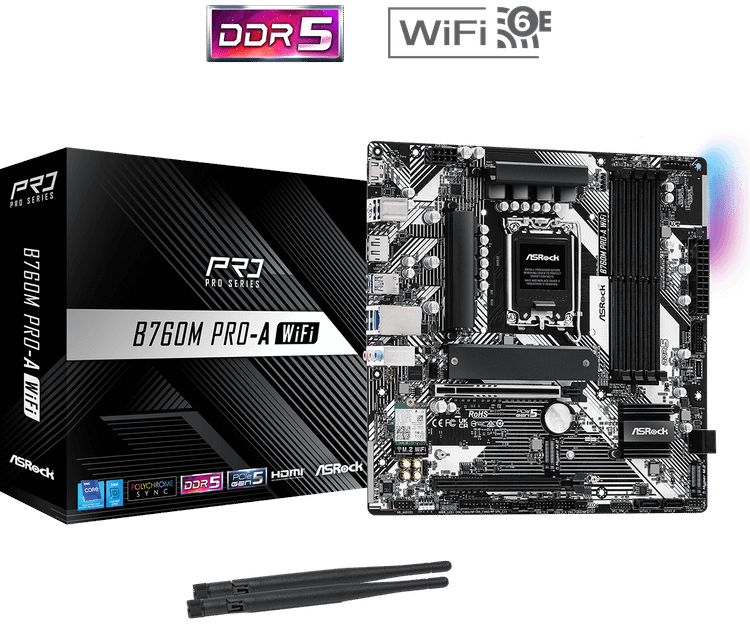 ASRock B760M Pro‑A WiFi DDR5 جدیدترین مادربرد نیمهحرفهای ازراک است که با تمرکز بر پایداری، کیفیت ساخت بالا و پشتیبانی از حافظههای DDR5،